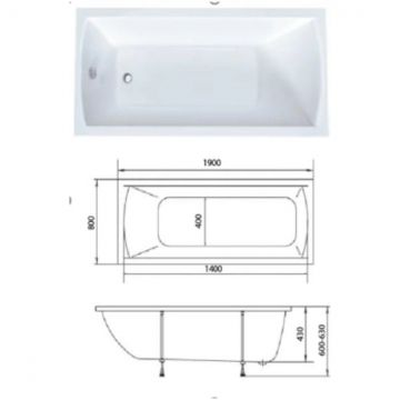Ванна акриловая прямоугольная 1MarKa (1Марка) Modern MG 1900х800 белый (01мод1980)