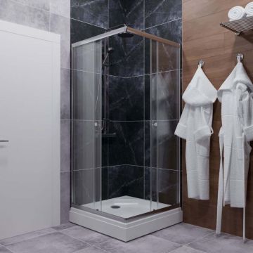 Душевой уголок Тритон (Triton) Вента-Хром 800х800х2020 мм, прозрачный 4 мм, профиль хром (Щ0000049620) низкий поддон (2места+сифон D90мм)